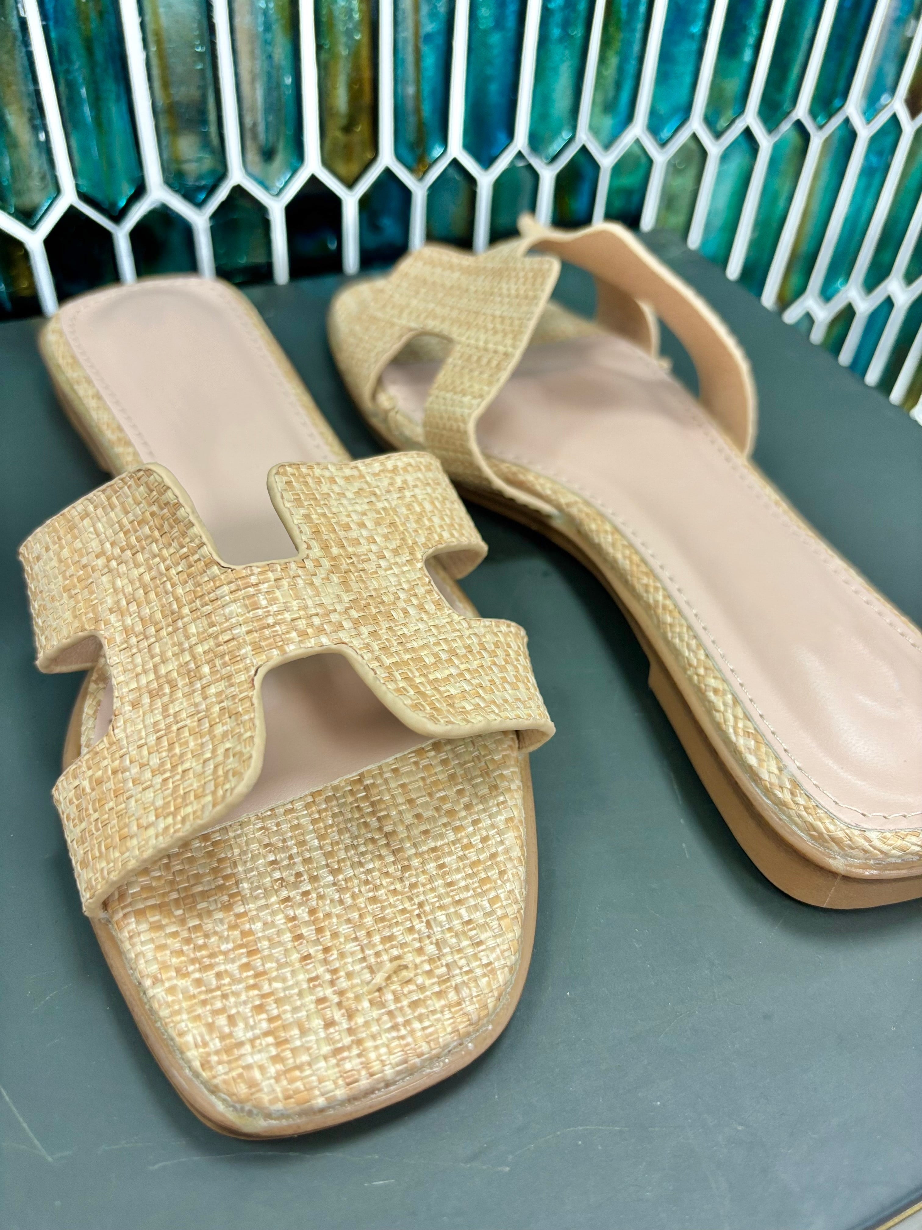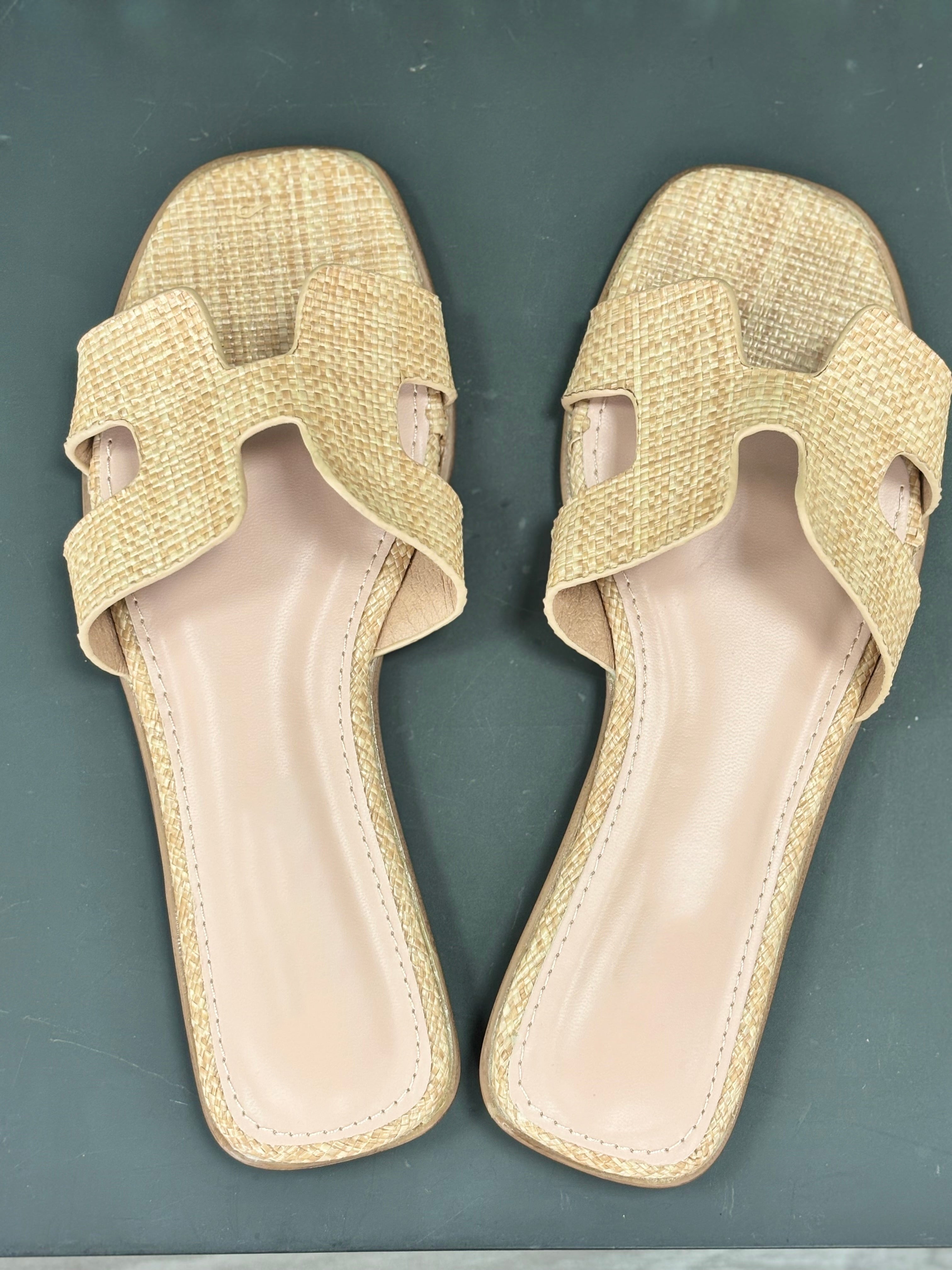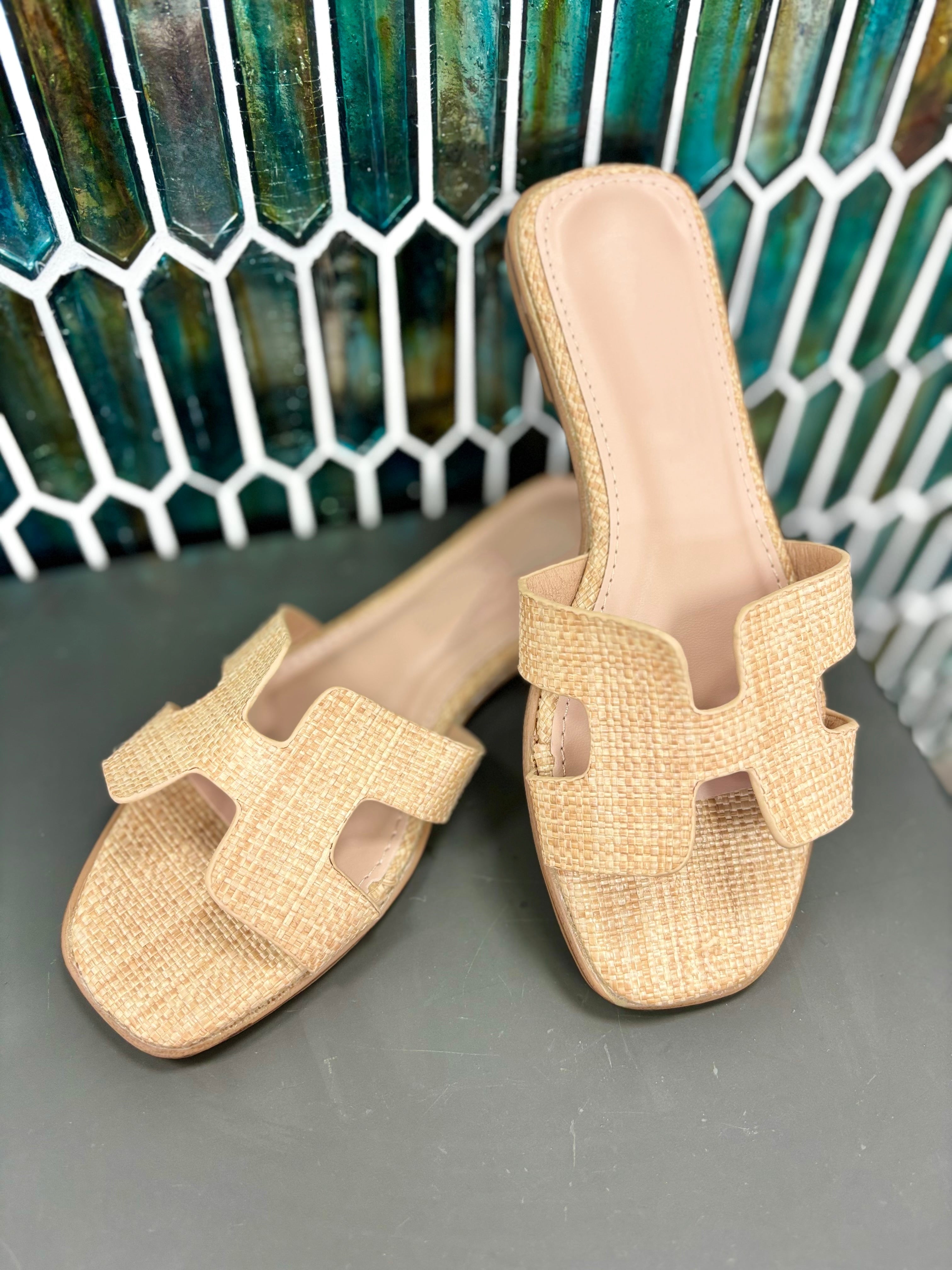 Step your sandal game up with these Heather Slip On Sandals! Featuring a unique H-shaped cutout upper design, these slip-ons are the epitome of minimalist chic. Available in both tan and raffia, they're a must-have addition to your shoe collection.