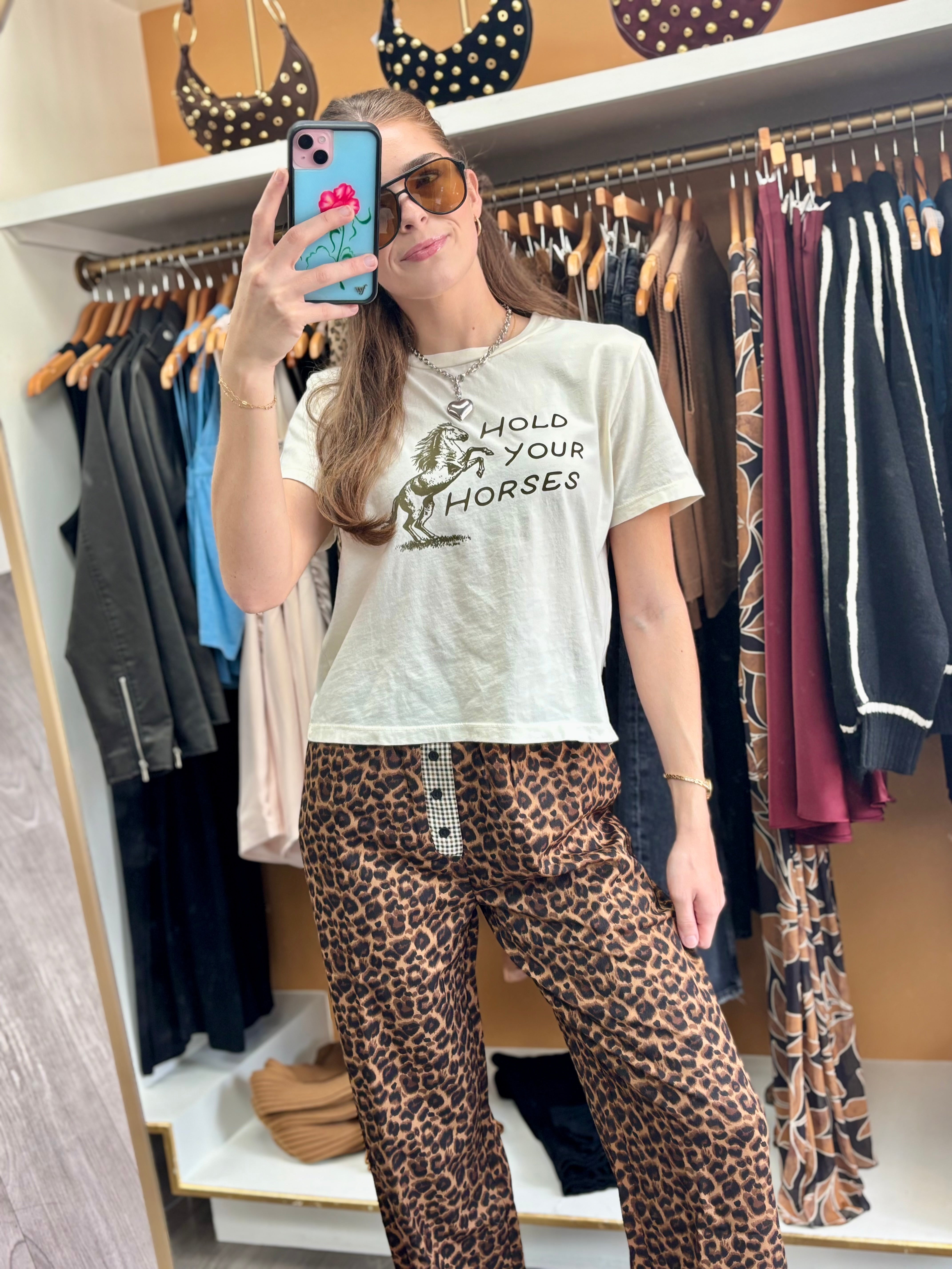 The Hold Your Horses tee brings playful attitude with a western vibe. A little cheeky, a little classic, and totally Sunny Somewhere.