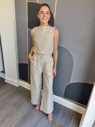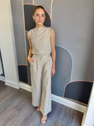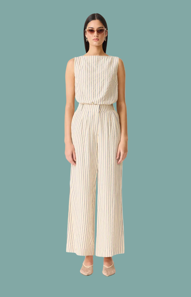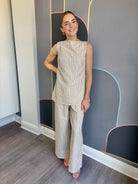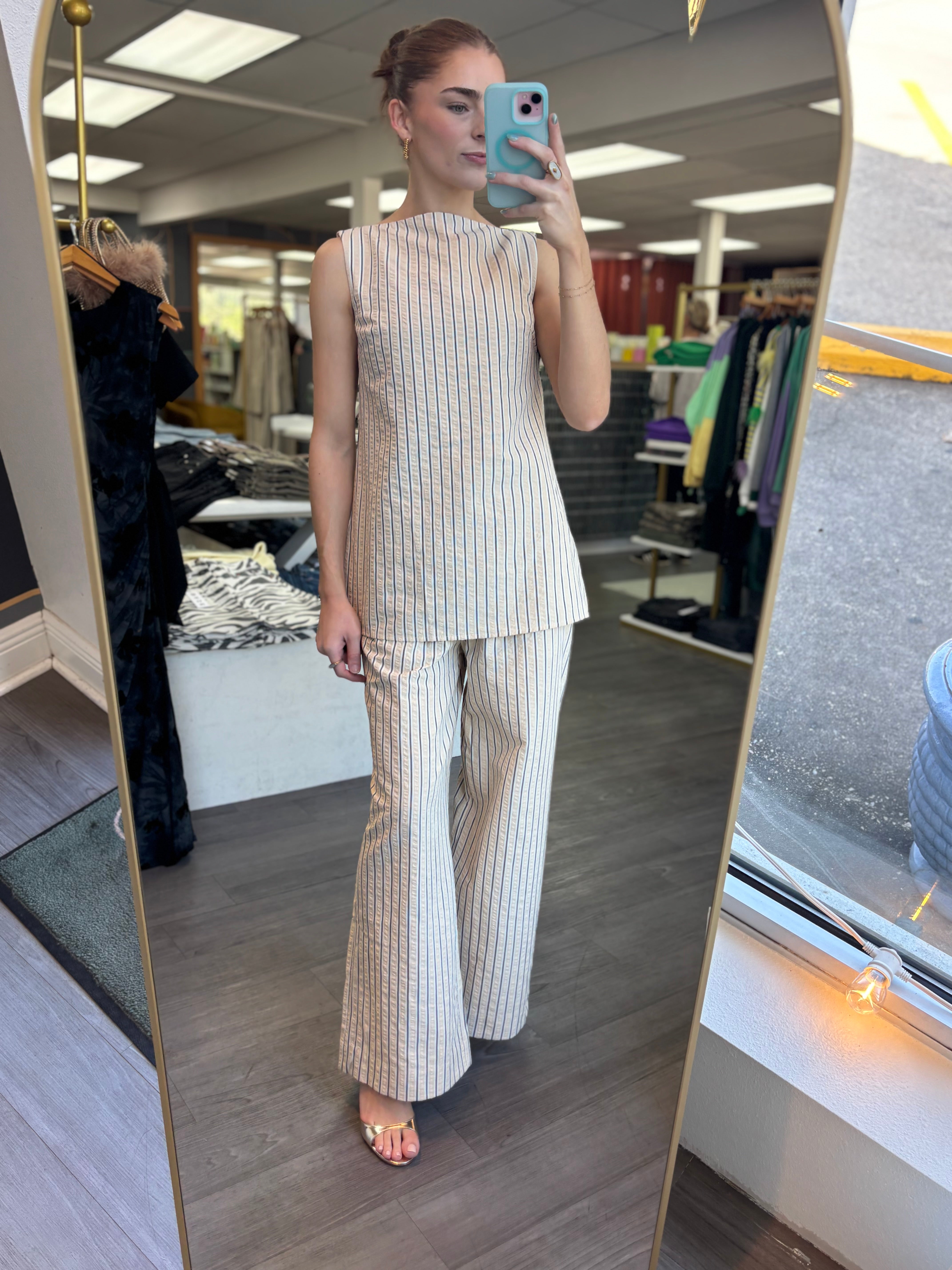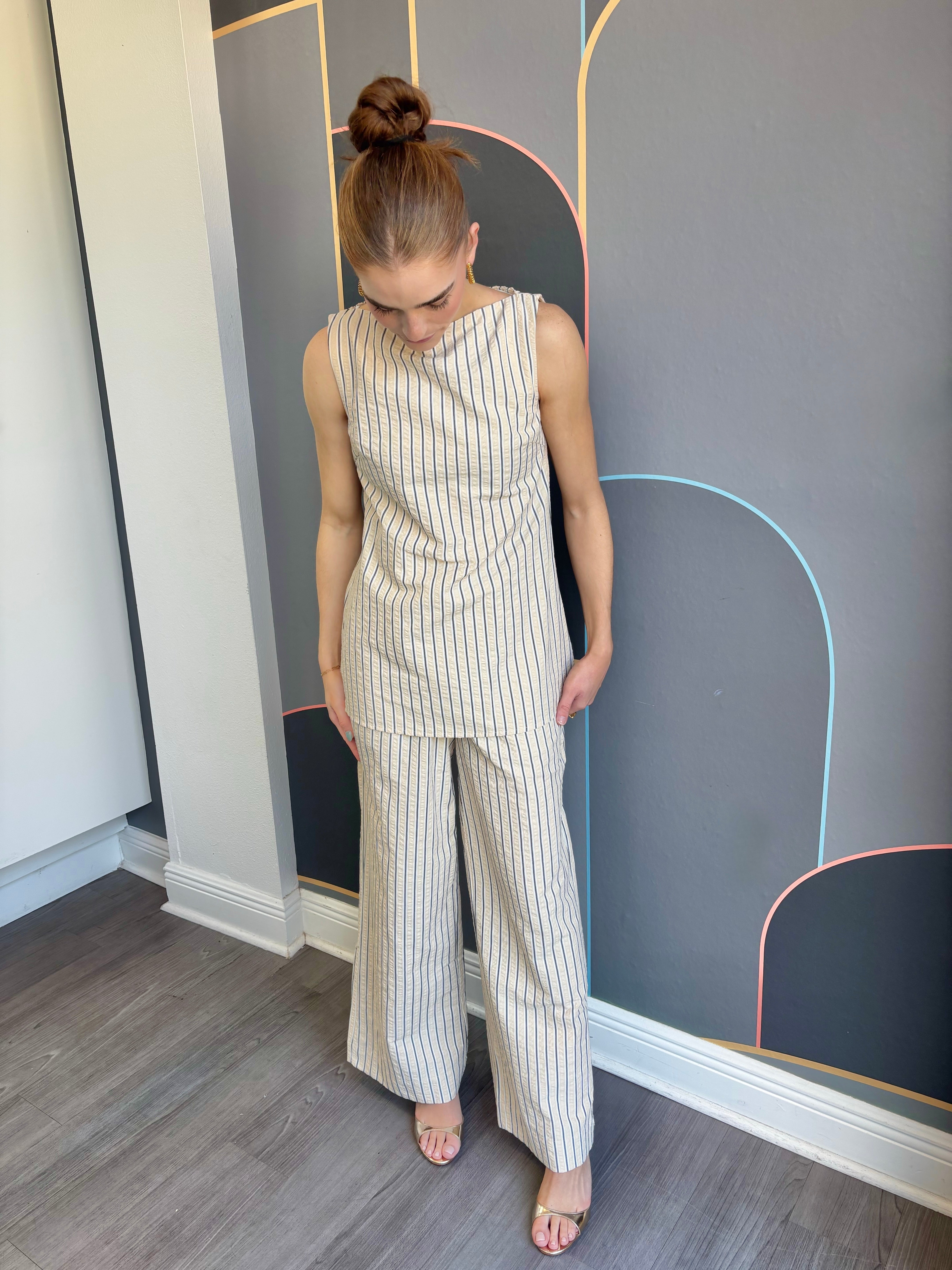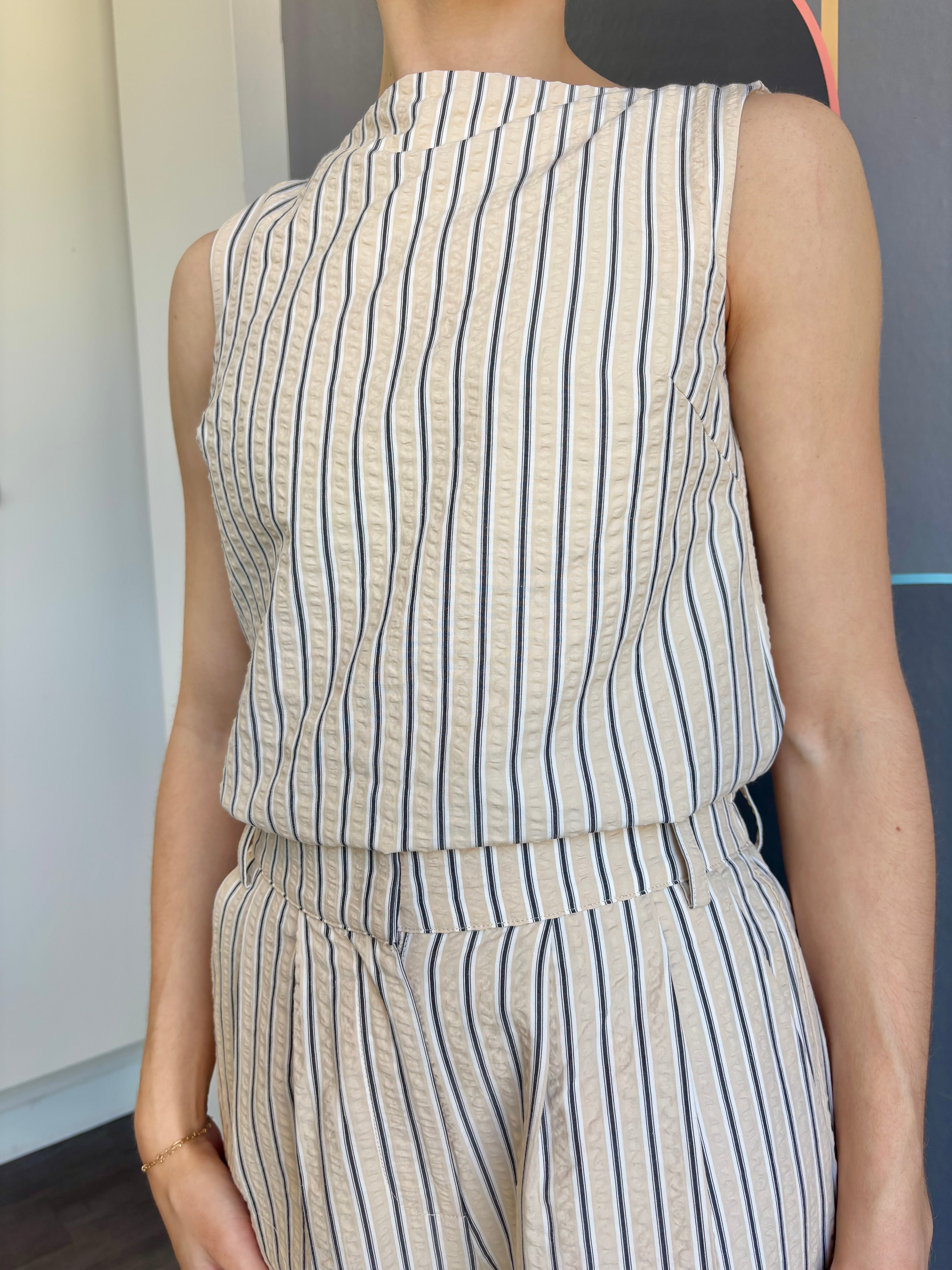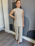 Effortlessly refined and easy to wear, this sleeveless top features a classic boat neckline and a relaxed, modern fit. Designed in a lightweight woven fabric with no stretch, it offers a clean, structured silhouette. Thoughtful details include a center back button with elastic closure and subtle side splits for added movement and comfort. A versatile staple that pairs perfectly with everything from tailored trousers to your favorite denim