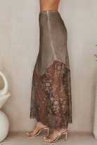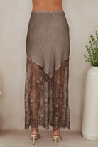 Effortless elegance meets everyday comfort in this viscose maxi skirt. The flowing fabric drapes beautifully while the delicate lace hem adds a touch of feminine detail. Perfect for dressing up or down, this versatile piece transitions seamlessly from day to night. Choose between classic black or rich chocolate to match your personal style.