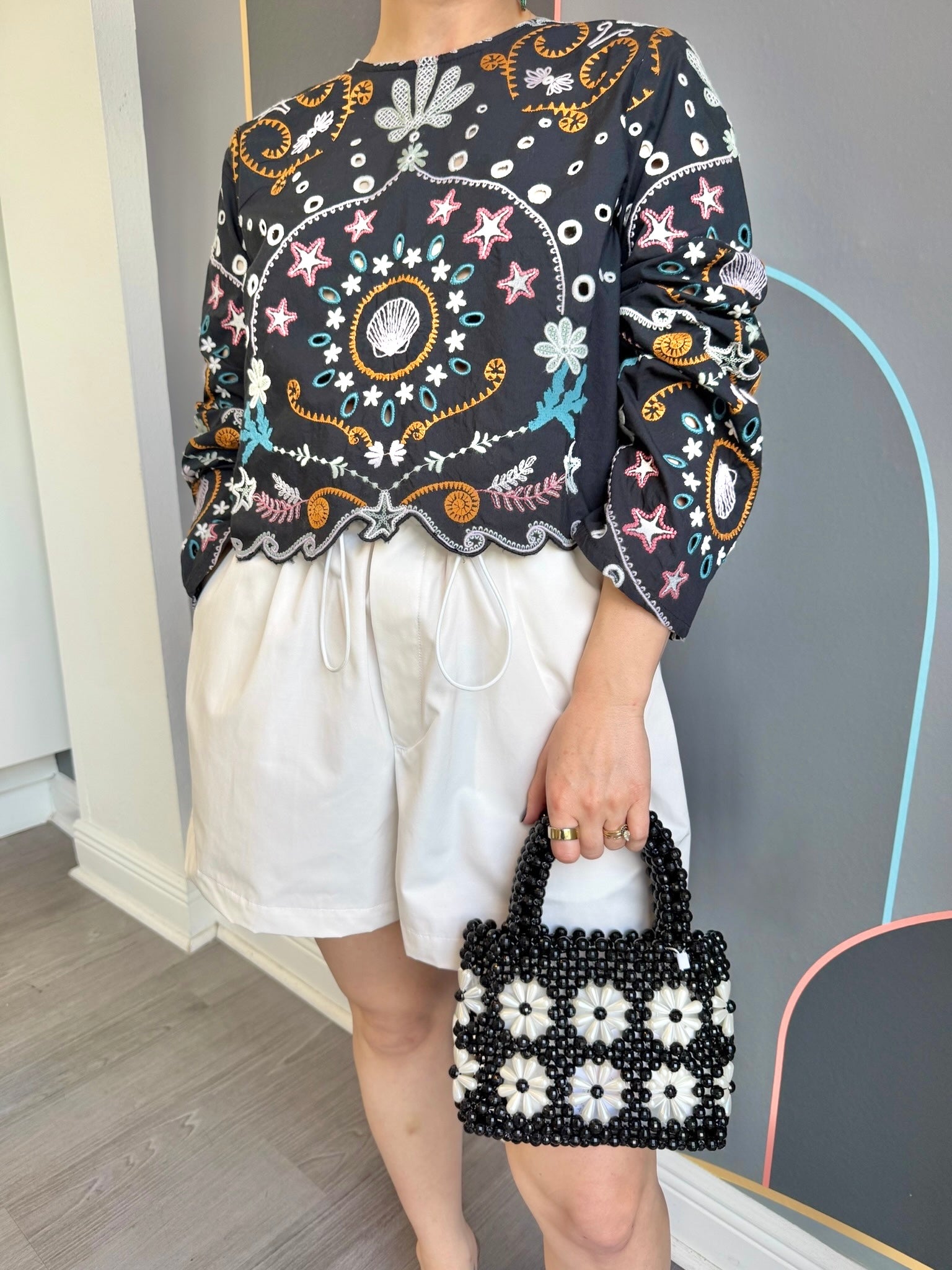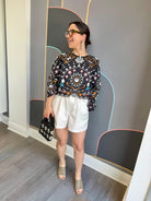 Introducing our stylish Leela Top, made of 100% cotton with delicate embroidered floral detail and a charming scalloped hem. Perfect for a casual day out, this top offers comfort and subtle elegance.