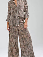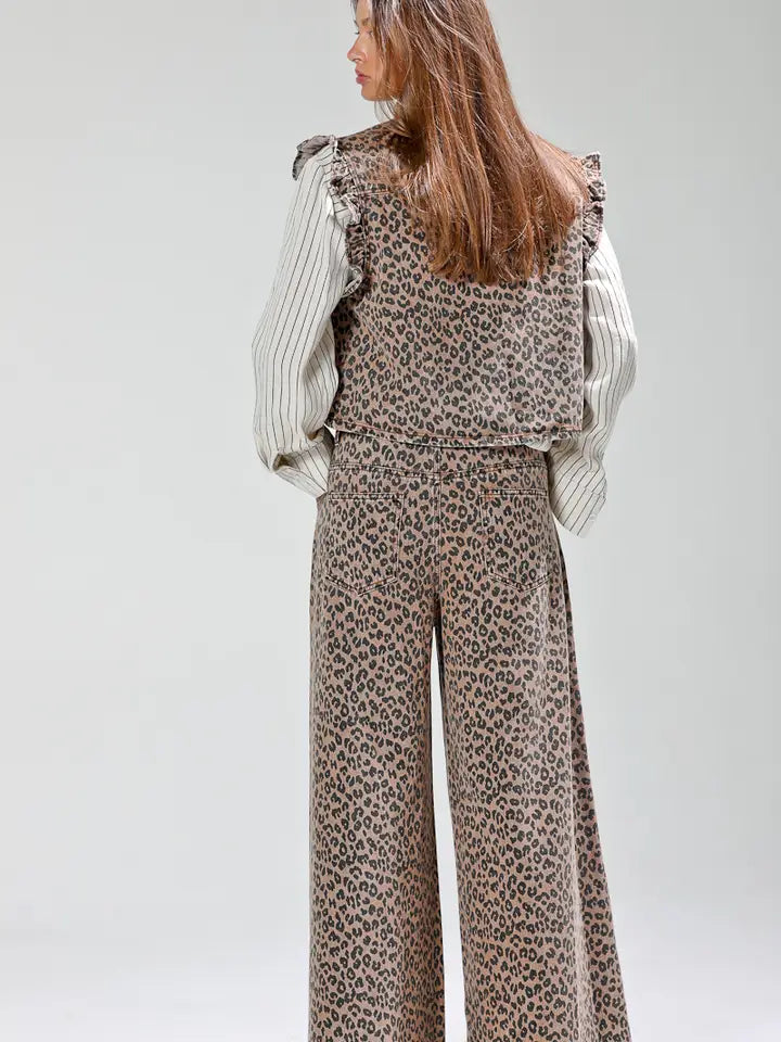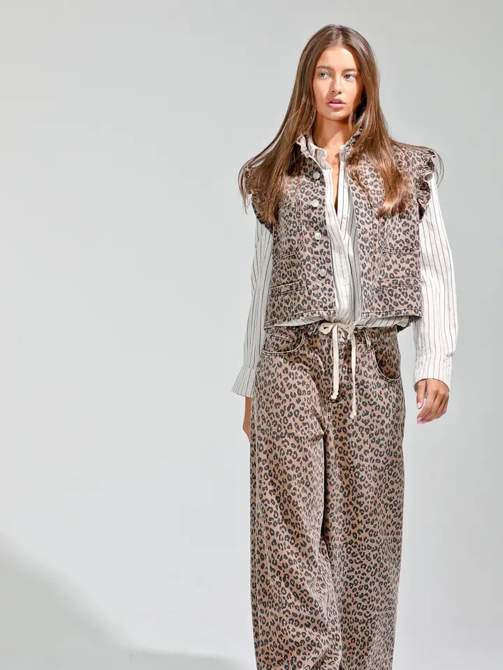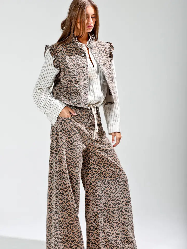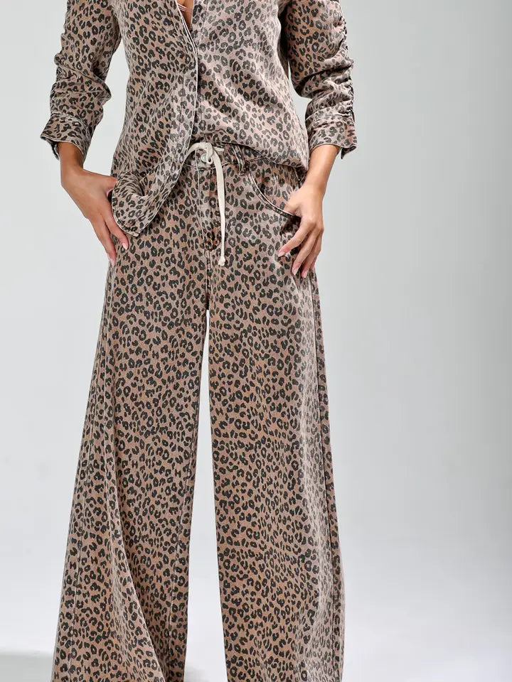 Leopard printed wide pants -waist drawstring