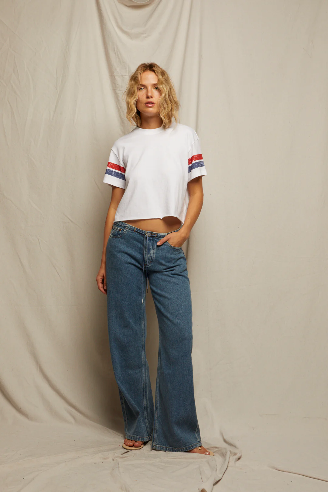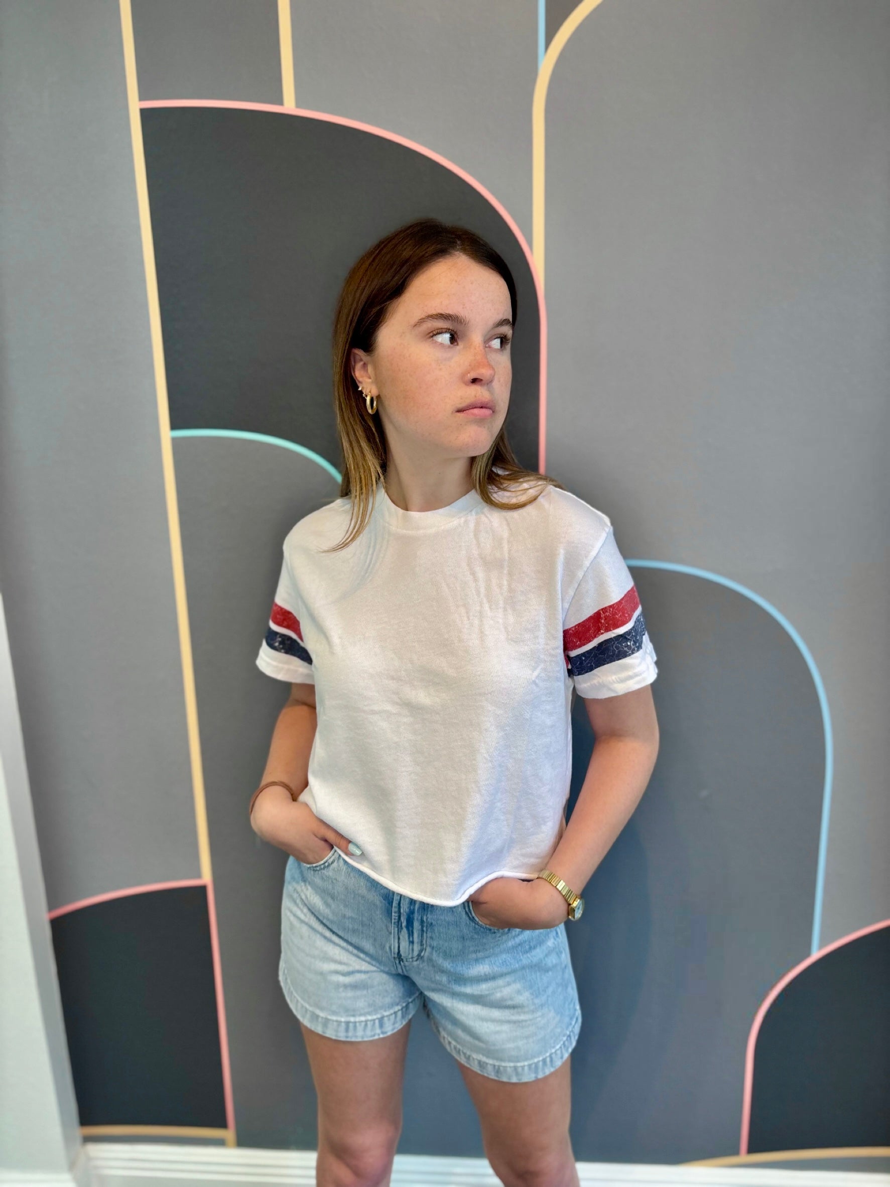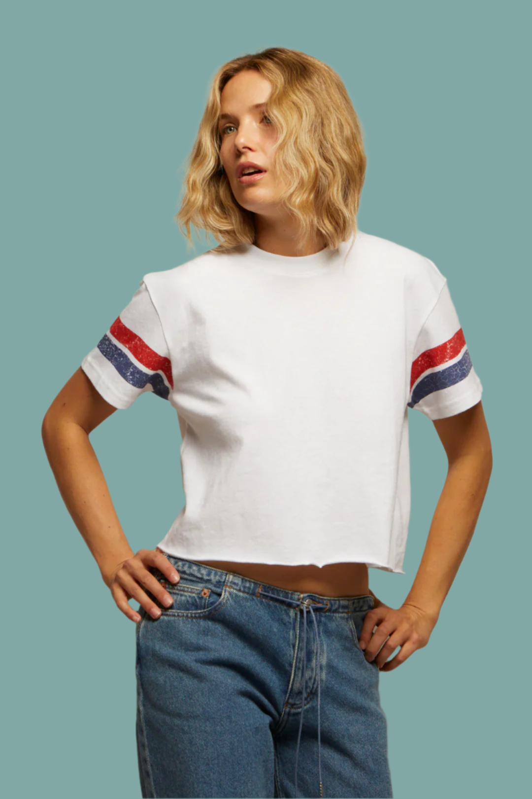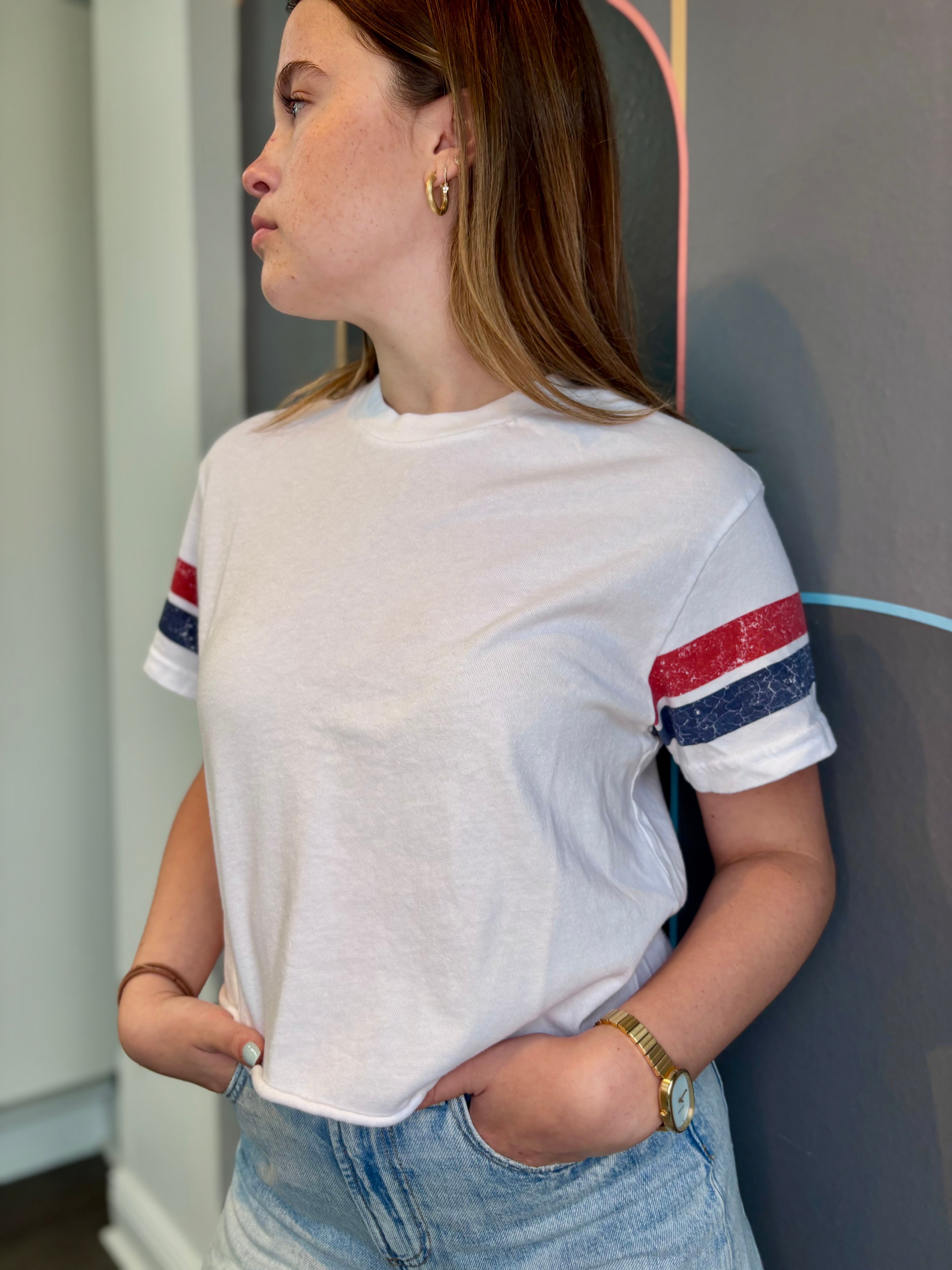 Effortlessly sporty, the Lexi Tee is perfect for any activity (or pretending to do one). With throwback flair from vintage-inspired sleeve stripes, it's cropped and relaxed, perfect for a brunch or a watching a game. Thoughtfully produced in California.