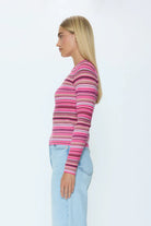 Madison reimagines the classic crewneck with its streamlined silhouette and breathable 100% cotton construction. Balancing softness and structure, the pink and brown multi stripes lend a playful touch, creating a versatile piece that transitions easily from weekday to weekend.