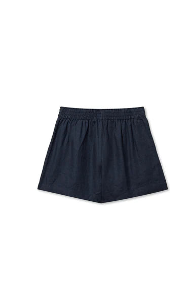 the malin short is the embodiment of warm weather ease. we designed them with a relaxed wide-leg opening, flat front pockets and a finished hem that keeps it polished. the high-rise smocked elastic waistband provides a flexible fit and gathered effect, pairing it perfectly with any tee.