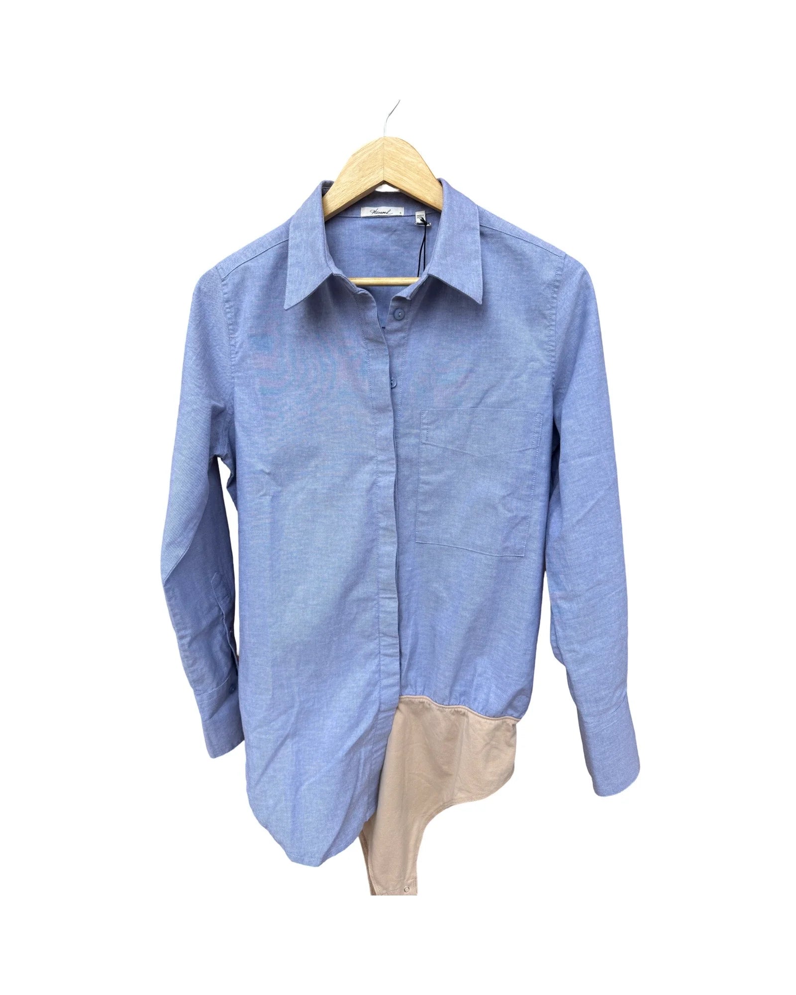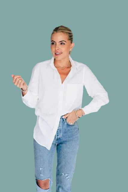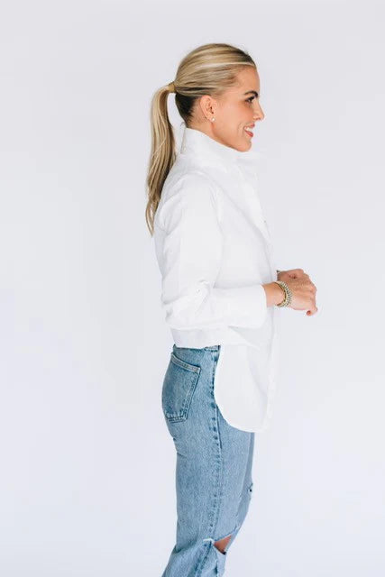 The McKinney Bodysuit combines the polished appeal of a classic collared button-down with the sleek, streamlined fit of a bodysuit. Perfect for effortless styling, this piece layers seamlessly under skirts, pants, or wear solo for an instantly put-together vibe. The structured collar and button front deliver timeless sophistication, while the fitted bodysuit silhouette keeps things modern and relaxed.