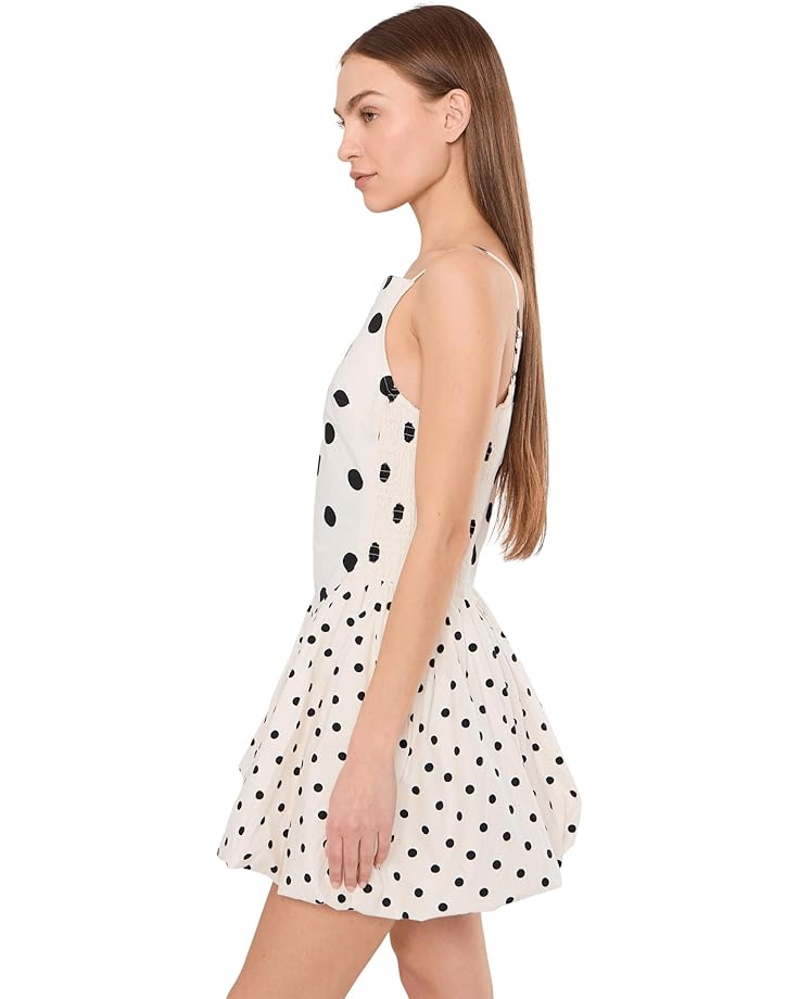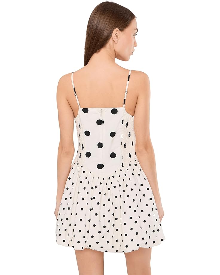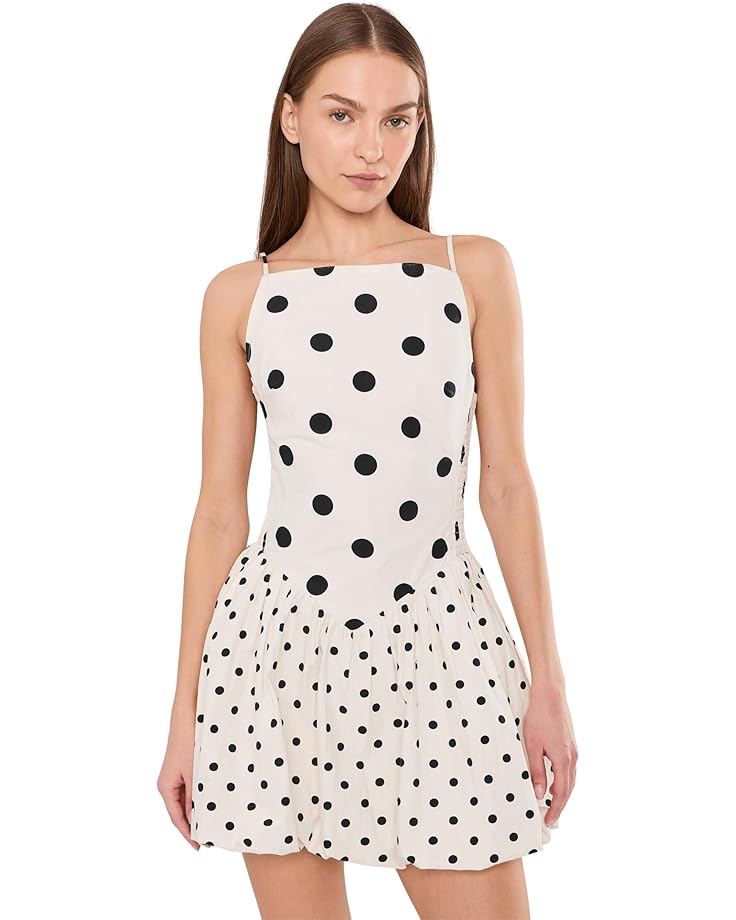 - The Free People™ Misty Mini adds adorable charm while keeping comfort at the heart of the design. It features straight neckline, sleeveless style with thin adjustable spaghetti shoulder straps, fit-and-flare silhouette, and above the knee length silhouette. This polka dot dress has smooth, structured front panel, clean seam finish, soft volume for movement, and slightly gathered structure creating flare.