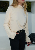 The Neo Mock Neck T-Shirt brings effortless style to your everyday rotation. Crafted from 100% pima cotton, this lightweight knit features a relaxed fit with a mock neck, bell sleeves, and subtle side slits that work whether you're dressing up or down. The easy, roomier silhouette moves with you without feeling oversized, while the fabric's natural stretch keeps you comfortable all day. Available in a versatile Parchment shade that pairs with everything. Machine washable and designed to maintain its softness with gentle care.