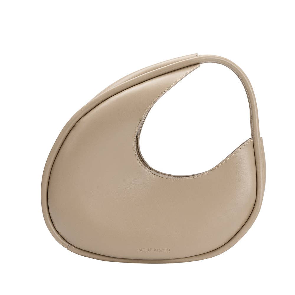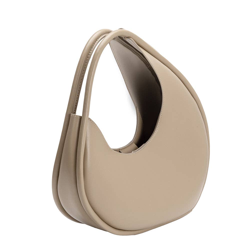 Introducing Nikki a unique circular asymmetrical shoulder bag made with recycled vegan leather. The double piping structured handles give this handbag its unique shape and feel. With a spacious interior, you can fit your everyday essentials like a phone, wallet, keys, sunglasses, and makeup.