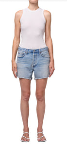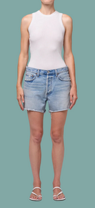 Meant to hang low on the hips, the Nye brings a true sense of ease to styling—no pinching, no second-guessing, just a slouchy silhouette that adapts to your movement. The generous five-pocket design isn’t just for show; it carries all the essentials, from vintage lighters to a phone and keys, with room to spare. The weight of the cotton feels sturdy but not stiff, draping in a way that keeps the vibe intentionally relaxed. The frayed hems give you endless options for layering—play with boxy crop tops or barely-there tanks, or slide a slouchy knit over for sun-chilled nights. Agolde’s denim is always grounded in LA’s effortlessly cool DNA, landing the Nye shorts solidly among summer’s most-wanted.