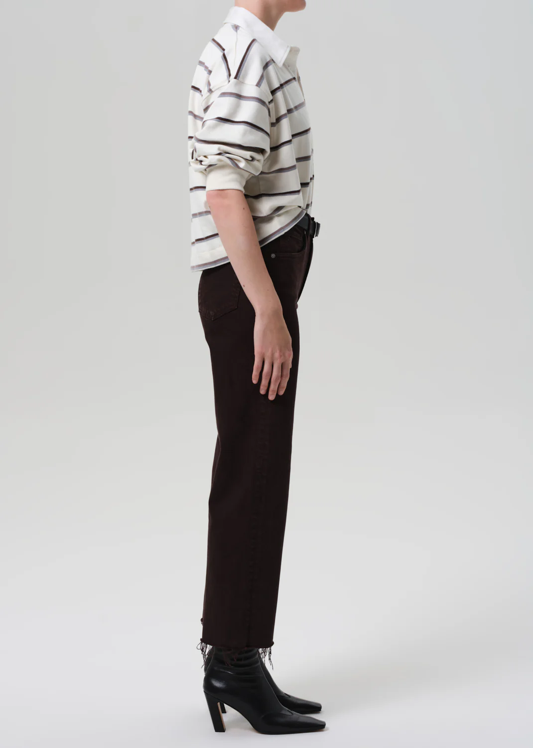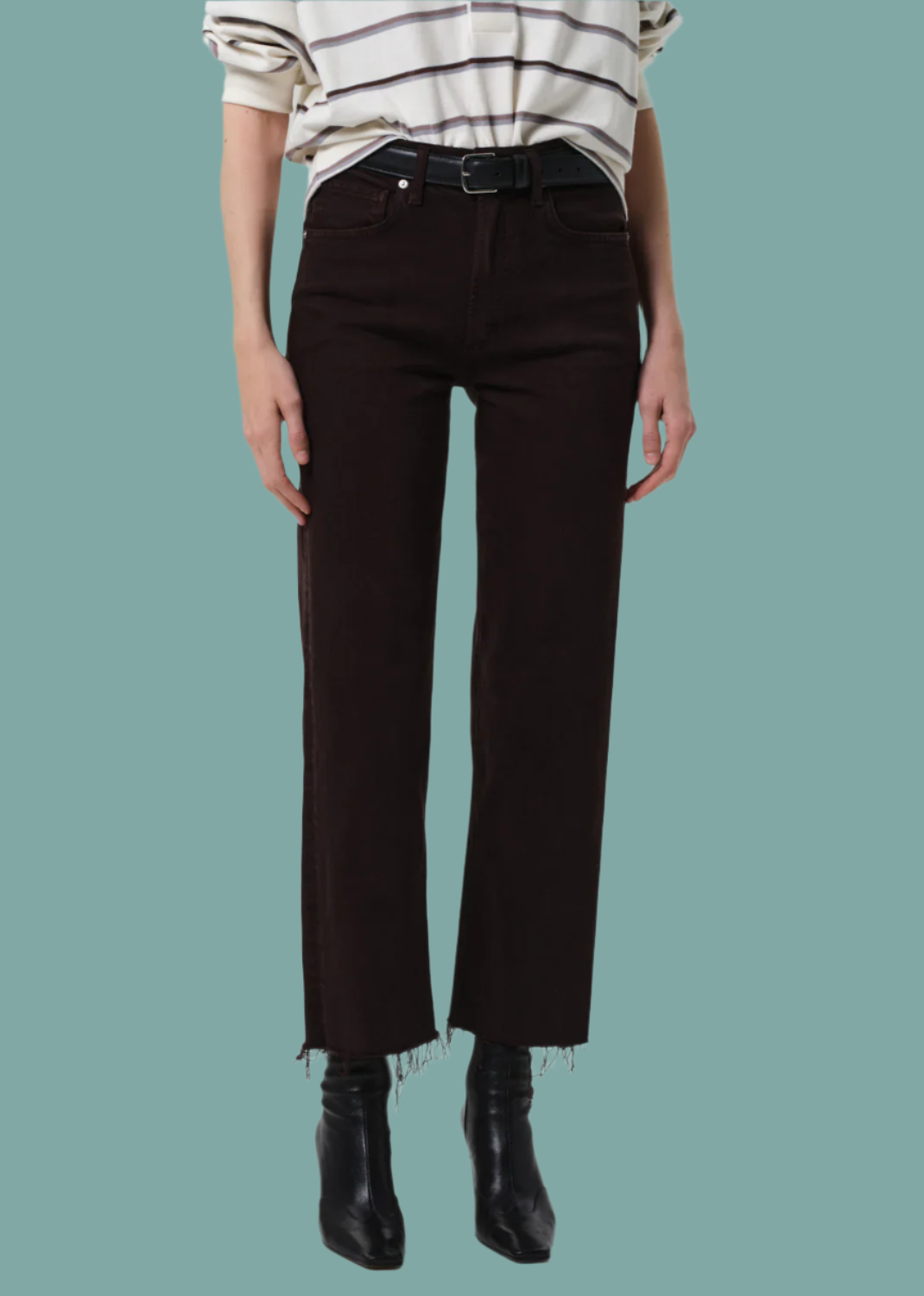 Step into comfort and style with the Palma Straight Raw Hem Jean in Carob. These ankle-length jeans feature a sleek straight leg cut and are made from soft, stretchy denim that feels light all day long. With a true-to-size fit and thoughtful details like a zip fly and raw hem, these jeans bring playful sophistication to your wardrobe. Crafted from organic cotton, viscose, and elastane, they blend comfort with conscious style.