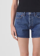 The Parker Long is an evolution of our iconic Parker Short, now designed with a slightly longer inseam for a more relaxed, easy fit. With its high-rise waist and just the right amount of room through the thighs, this silhouette offers laid-back comfort without losing its clean, timeless appeal. Rendered in a dark vintage indigo wash, it captures the depth and character of a true heritage denim short.