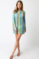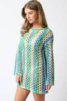Our Phoenix Cover Up features a long sleeve and a boat neckline.