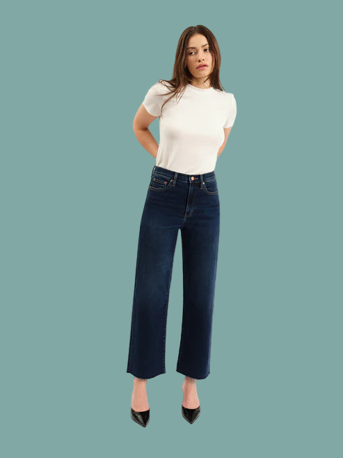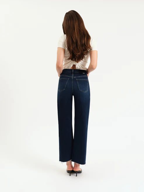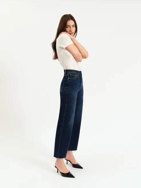 The Pleaser in Magic Hour is our tried and true high rise wide ankle in a rich indigo. Constructed from our Hug fabric, this jean is flexible enough to hug your body, yet heavy enough to cinch you in.