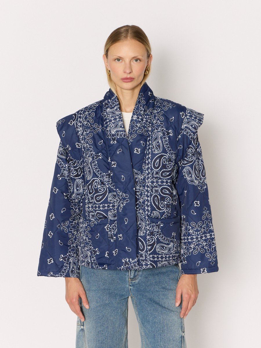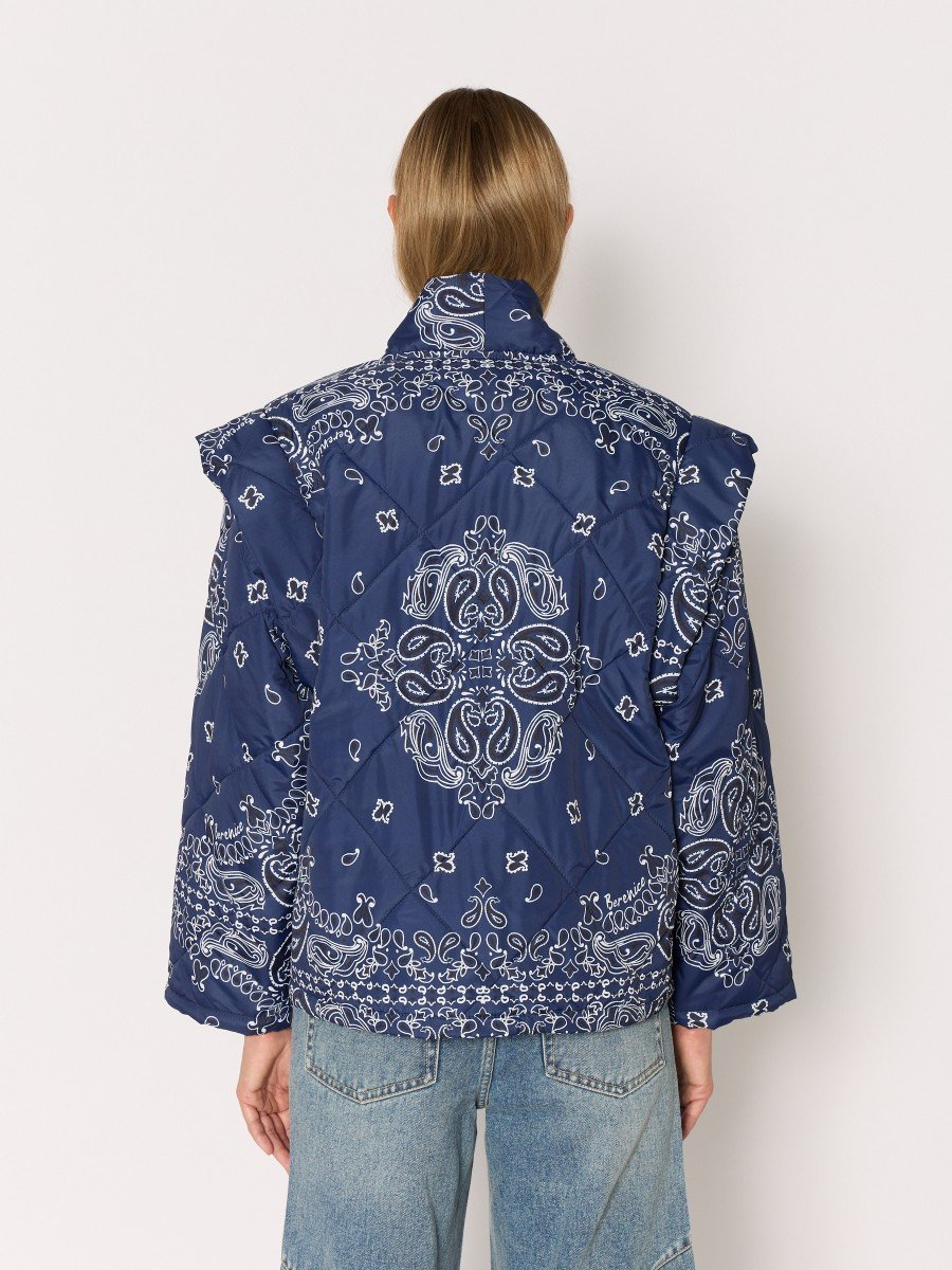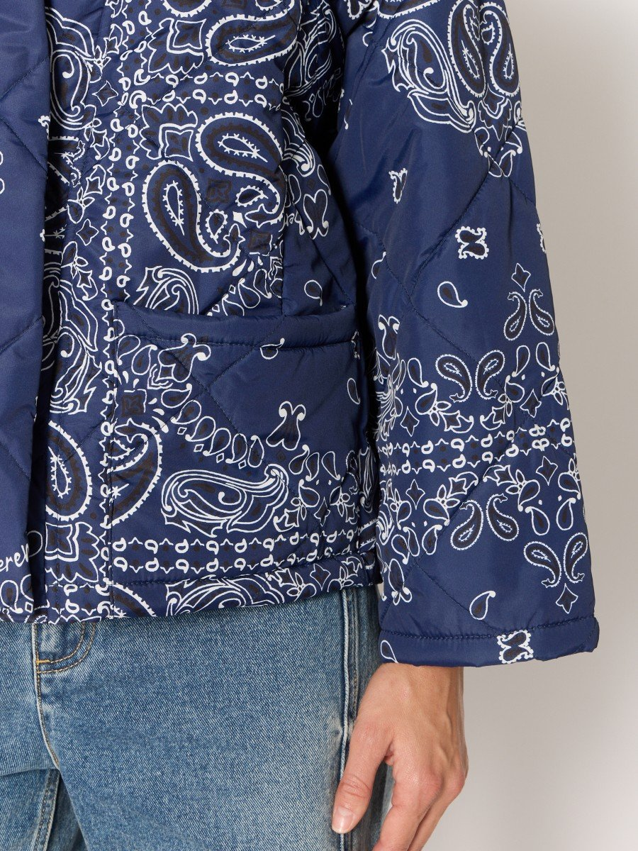 The Quilted Bandana Jacket brings a fresh streetwear vibe with its bold blue bandana print and comfortable quilted fabric. Its detachable sleeves offer versatile wear, letting you switch between a jacket and a sleeveless look effortlessly. Featuring front pockets for convenience, it’s perfect for creating a stylish urban outfit when paired with leggings or high-waisted jeans. Practical, comfortable, and effortlessly cool, this jacket makes a standout addition to your casual wardrobe.