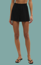 The Scout Jersey Short combines comfort and style in a versatile everyday piece. Crafted from 100% cotton jersey, this high-rise mini short features a soft mineral wash finish and lightweight construction perfect for warm weather. The elastic waistband ensures a secure fit, while functional side seam pockets add practicality. With a 2½" inseam, it's designed for a flattering silhouette that works for casual outings or relaxed weekends.