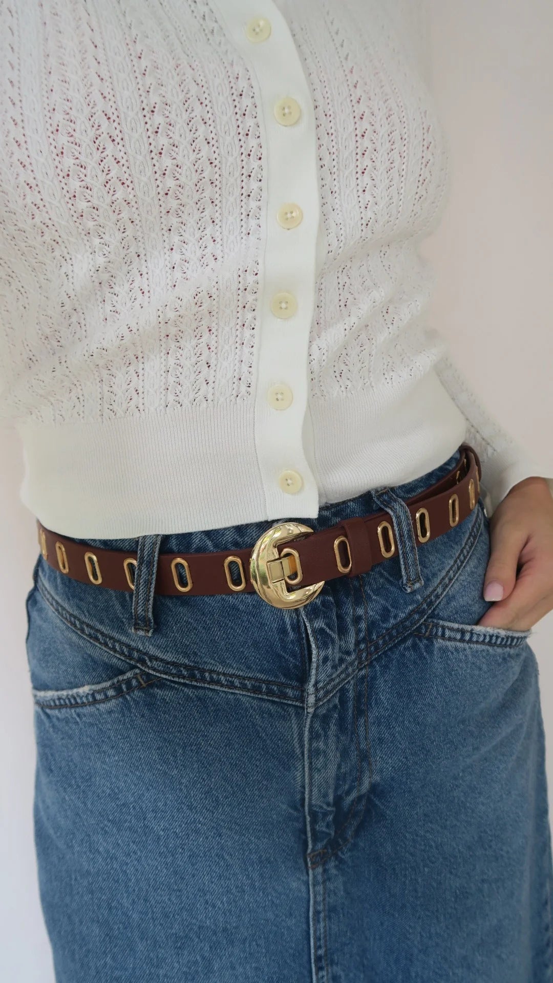 Made from cruelty-free vegan leather, this belt is not only stylish, but also environmentally conscious. The gold plated brass buckle and grommets add a touch of glamour to any outfit. With a length of 42.25" and a width of 1", it's fully adjustable for the perfect fit. Get ready to slay in style!