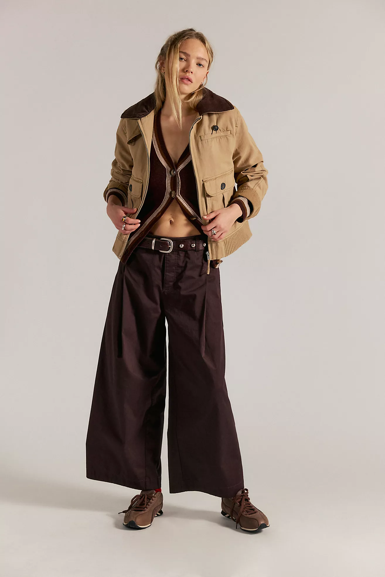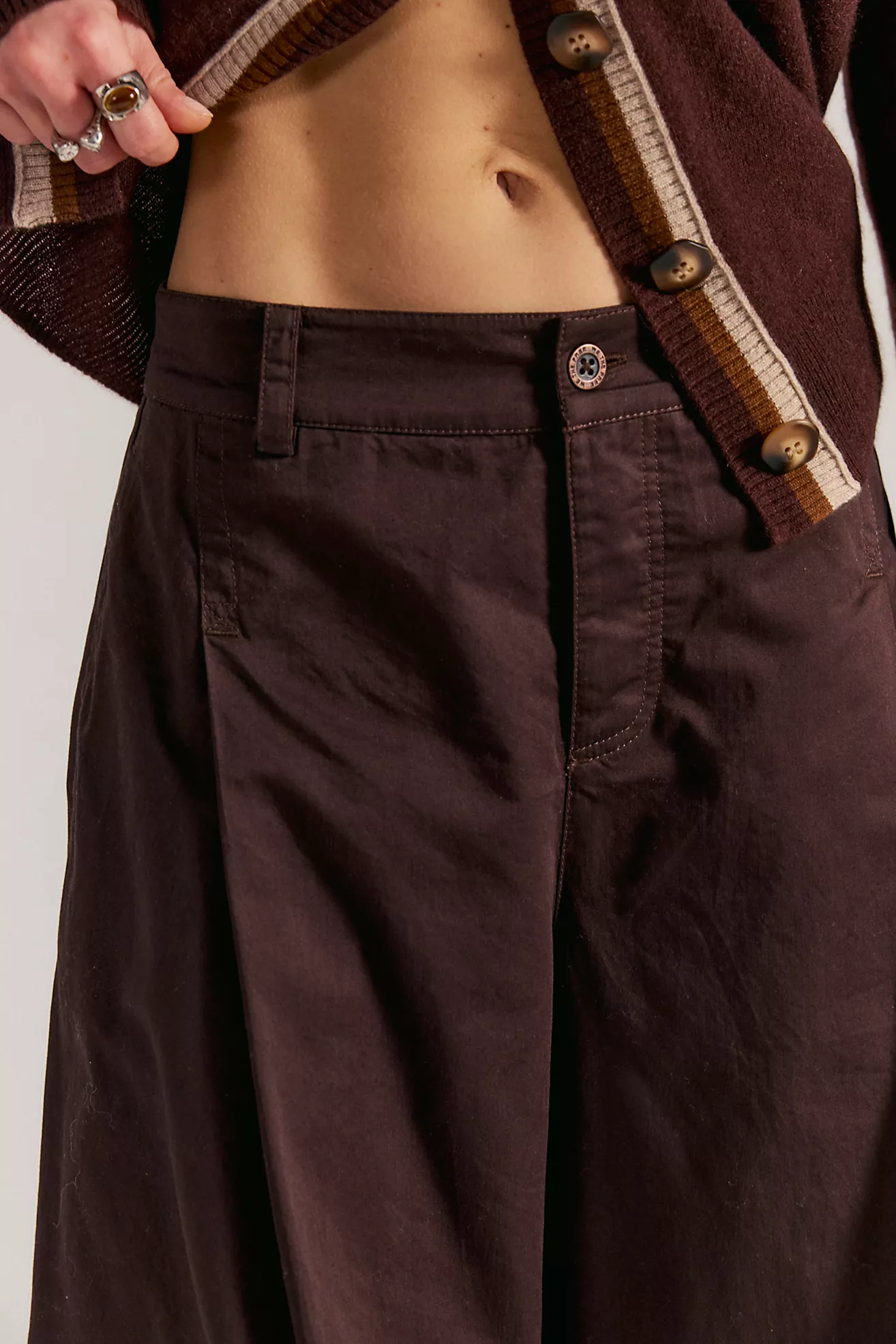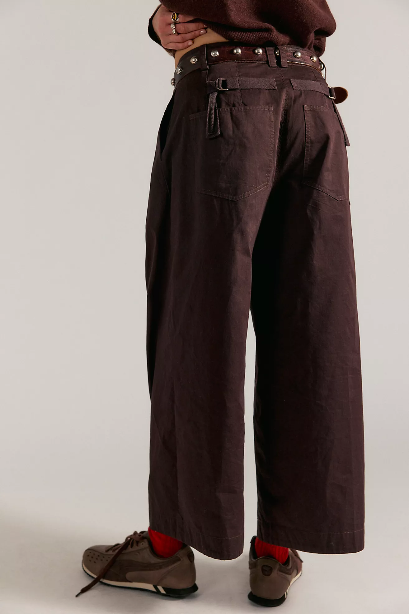 Effortlessly cool in every way, these sleek chinos are featured in a crisp cotton fabrication with unique front pleats that create an articulated leg shape you won't find anywhere else. Button fly, knife pleats, and ankle length silhouette pair with adjustable slider straps above back patch pockets for a customizable fit. Side seam pockets and belt loops complete the design. Wear high-rise or low-slung—size up for a slouchier, oversized look.