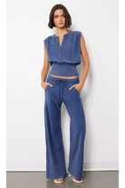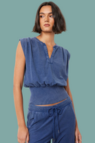 Split Neck Ribbed Sleeveless Tee Effortless sophistication meets everyday comfort in this split neck sleeveless tee. The ribbed waist creates a flattering silhouette while the breathable, sleeveless design keeps you cool and polished. Perfect for layering or wearing solo, this versatile piece elevates any wardrobe with understated style and modern edge.