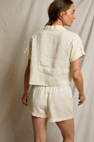 why we love it: we’re talking about fabric that breathes better than anything else hanging in your closet. finished with cuffed short sleeves for structure, clean enough for a lunch meeting, but relaxed enough for the beach trip you have planned. pair it with the matching malin short for a styled set.