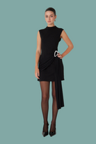 The Topher dress is your go-to for effortless sophistication. Made from luxurious stretch crepe that moves with you, this little black dress features a stunning side drape that adds dimension and flow. A crystal-embellished sash cinches your waist, creating a flattering silhouette that works for everything from dinner dates to cocktail events. Timeless, elegant, and undeniably chic.