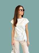 Elevate your style with the Tucson Cotton Top. This playful white top features cap sleeves and a cute, elevated side tie. Made with soft, breathable cotton, this top is perfect for any occasion.