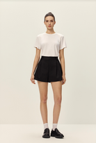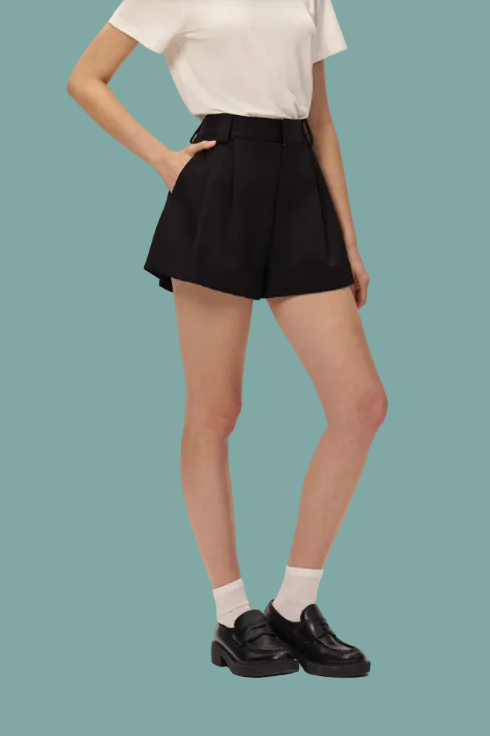 Elevate your wardrobe with the Valeska Shorts, featuring a flattering high-waisted silhouette and crisp pleated detailing. The structured design creates a polished, vintage-inspired look perfect for dressing up or down. Functional belt loops allow you to customize your fit and style. Crafted in classic black, these versatile shorts transition seamlessly from casual outings to more refined occasions. A timeless piece that works with everything in your closet.